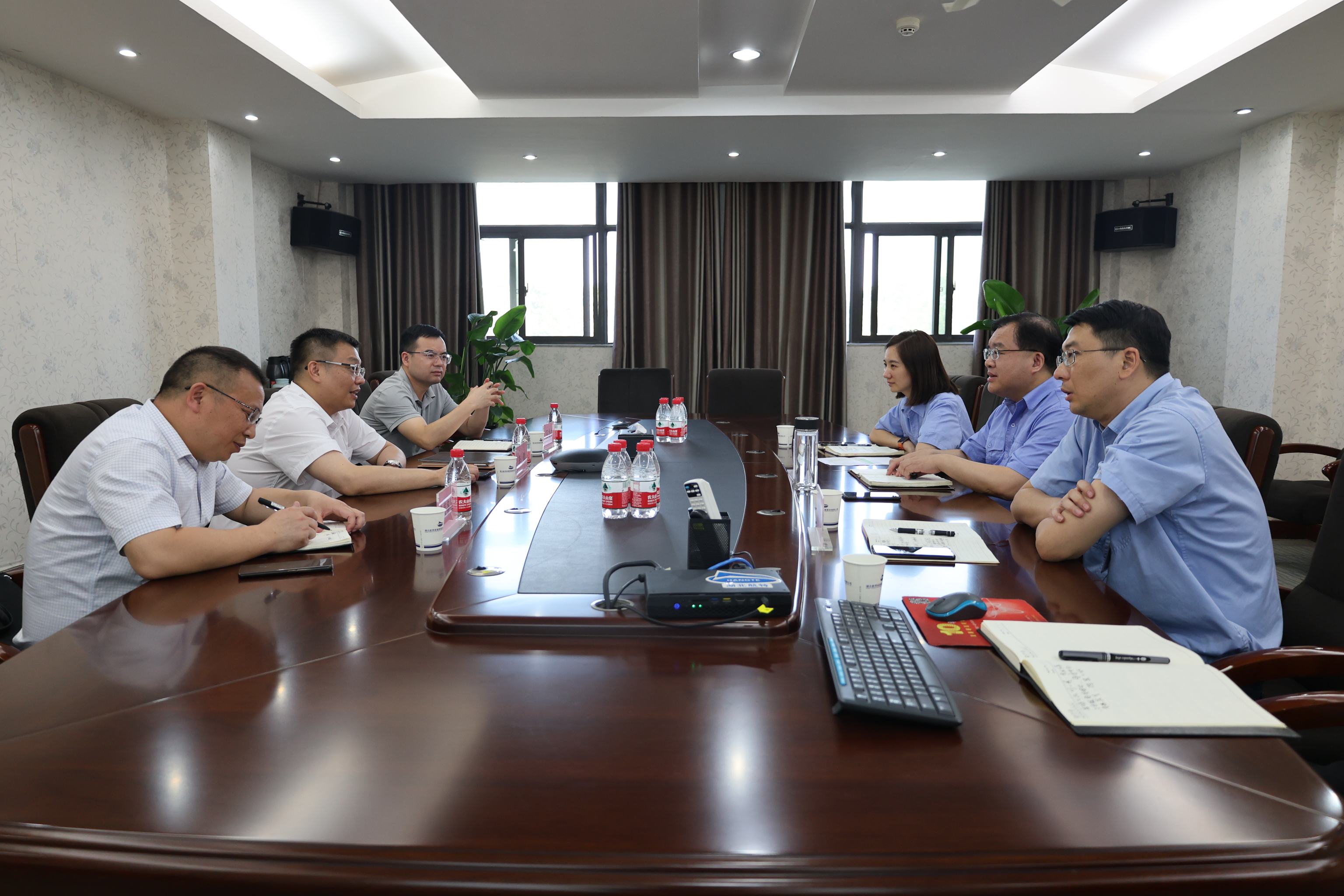 7月10日,荊門高新區(qū)·掇刀區(qū)委副書記、區(qū)委政法委書記李鵬等一行到航特調(diào)研。總經(jīng)理陳陽(yáng)陵,副總經(jīng)理陳云參加座談。